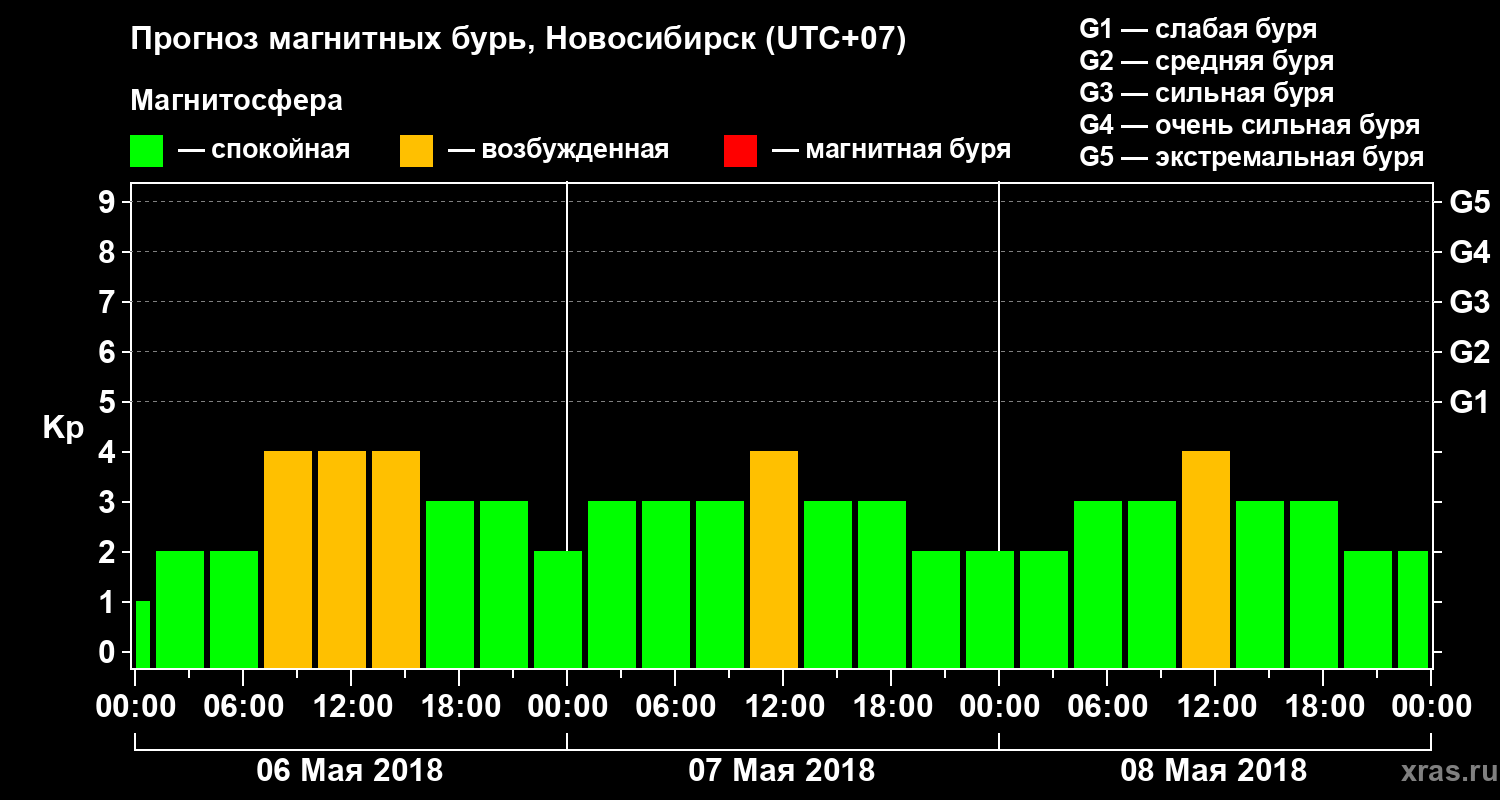 Прогноз магнитных бурь в Новосибирске — 6 мая 2018 года