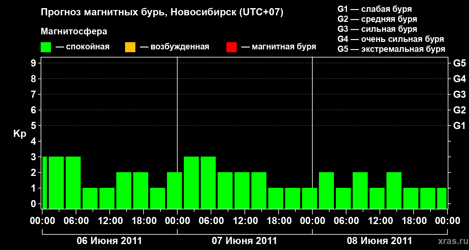 Прогноз магнитных бурь в Новосибирске — 6 июня 2011 года