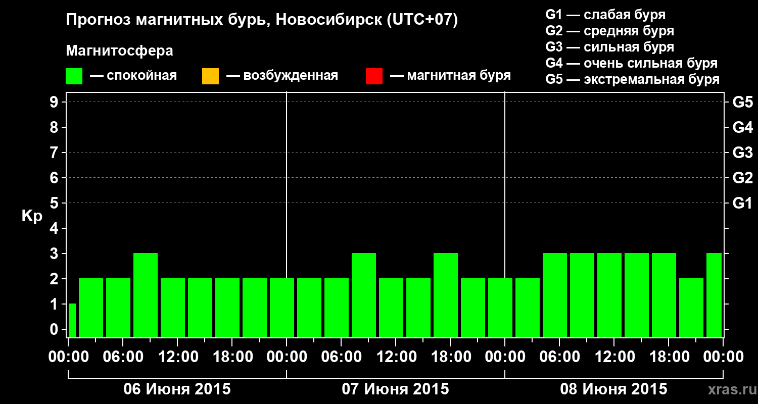Прогноз магнитных бурь в Новосибирске — 6 июня 2015 года