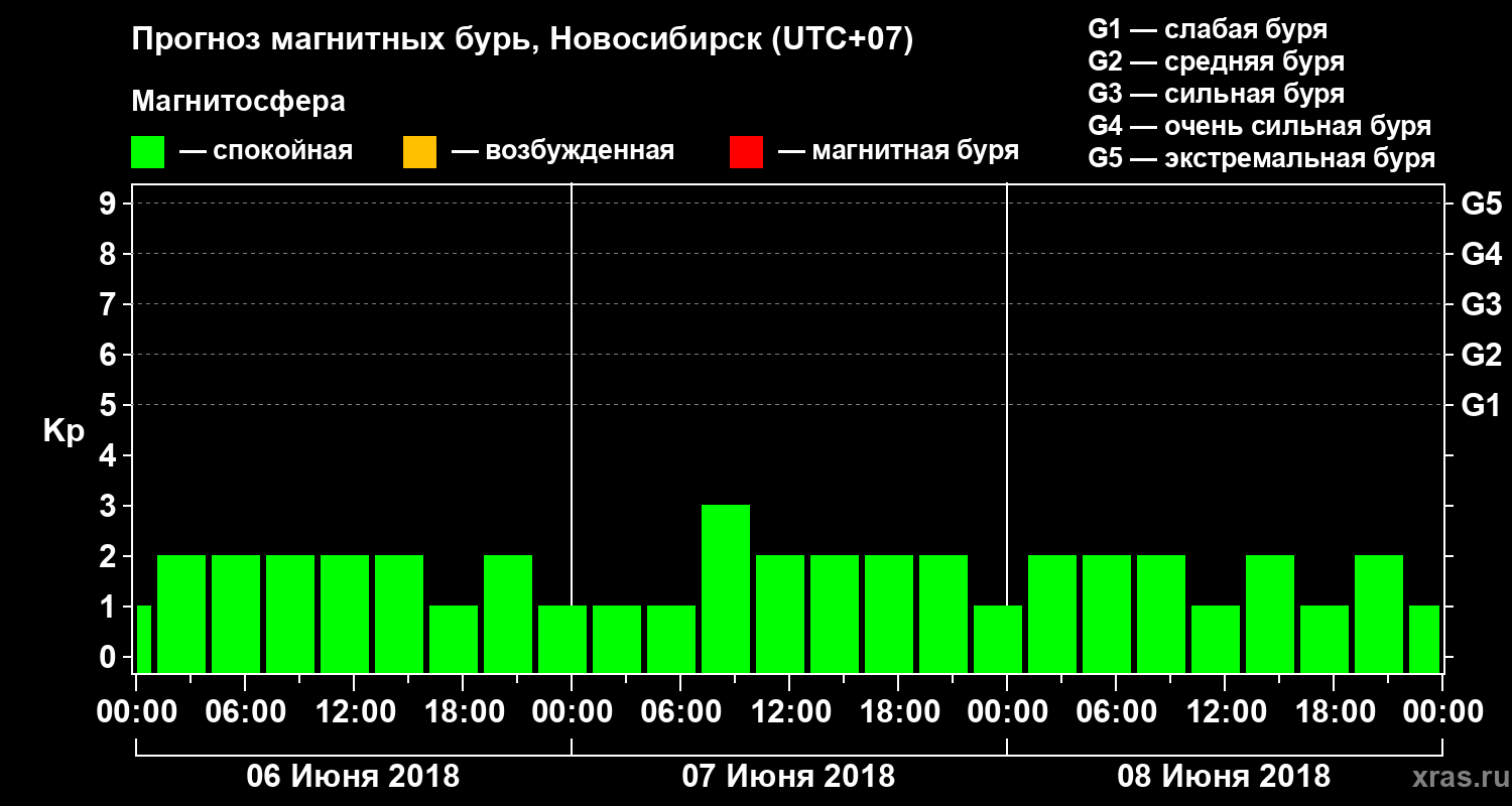 Прогноз магнитных бурь в Новосибирске — 6 июня 2018 года