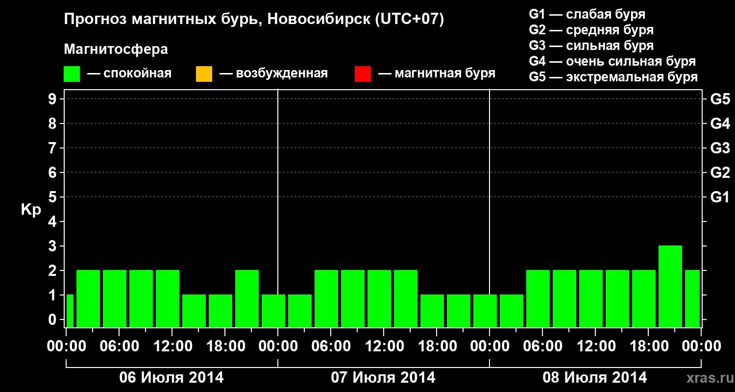 Прогноз магнитных бурь в Новосибирске — 6 июля 2014 года