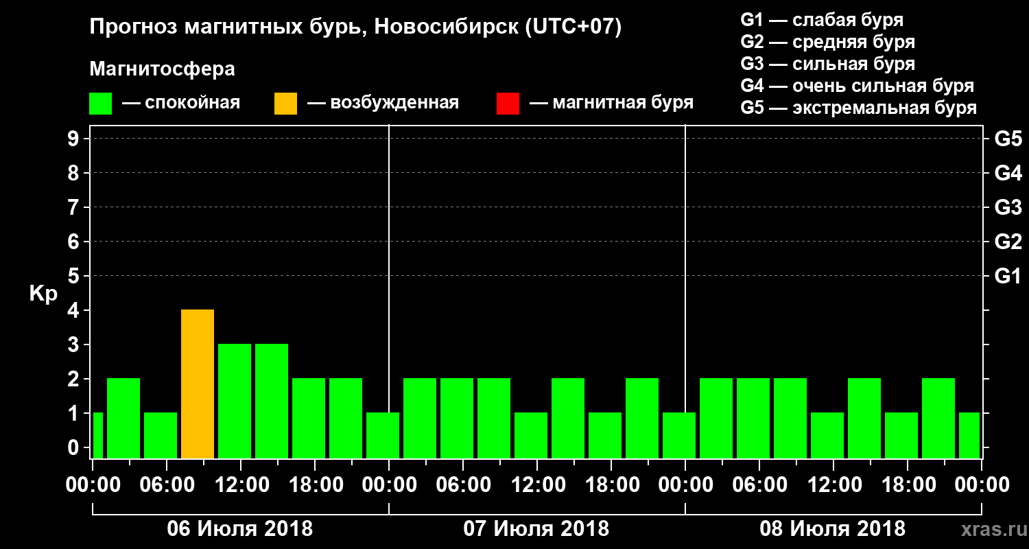Прогноз магнитных бурь в Новосибирске — 6 июля 2018 года