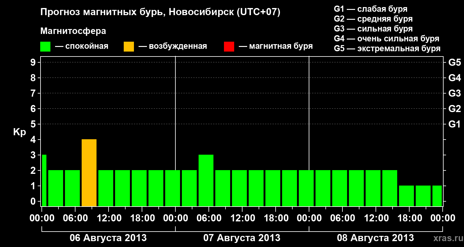 Прогноз магнитных бурь в Новосибирске — 6 августа 2013 года