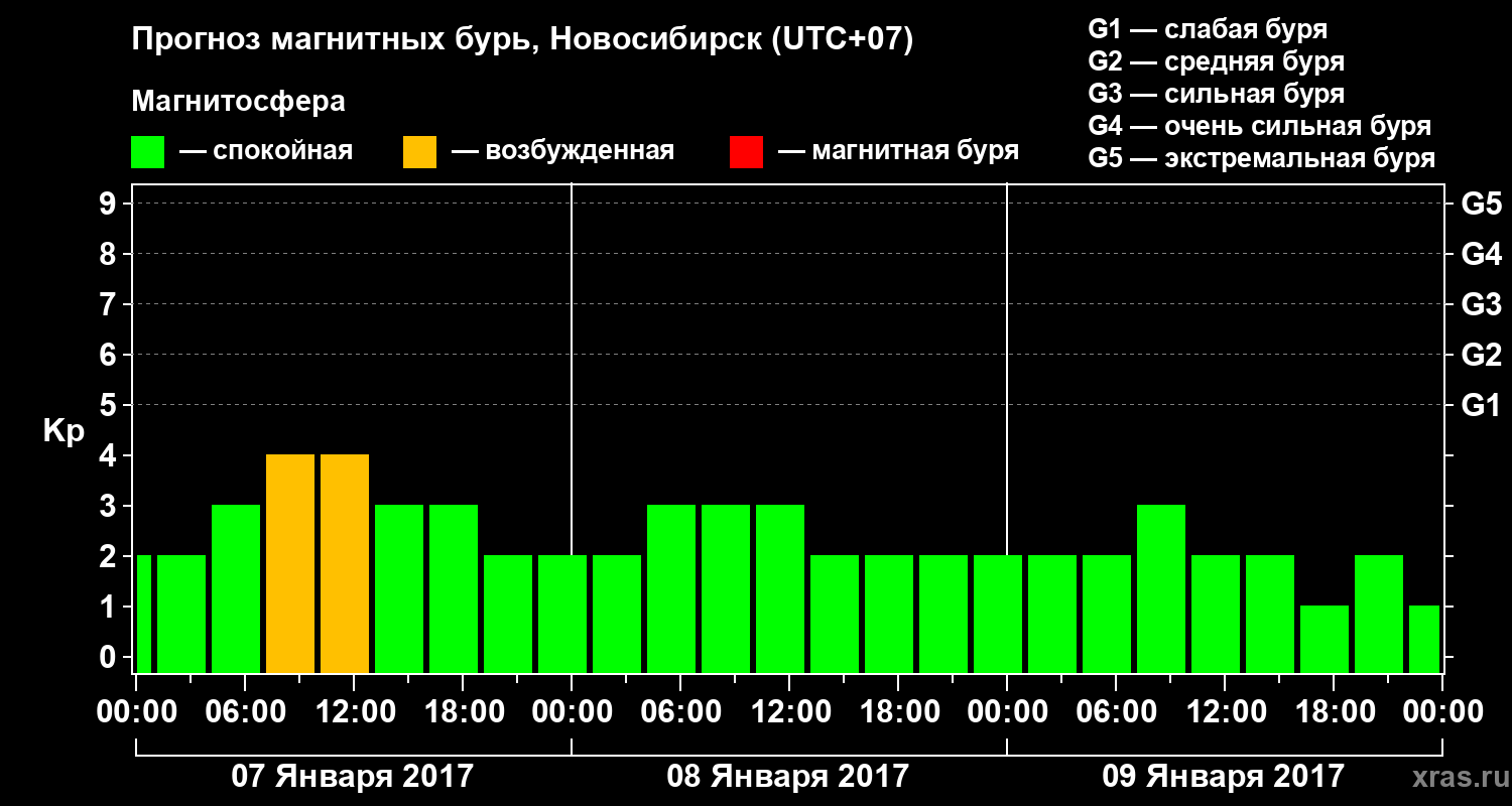 Прогноз магнитных бурь в Новосибирске — 7 января 2017 года