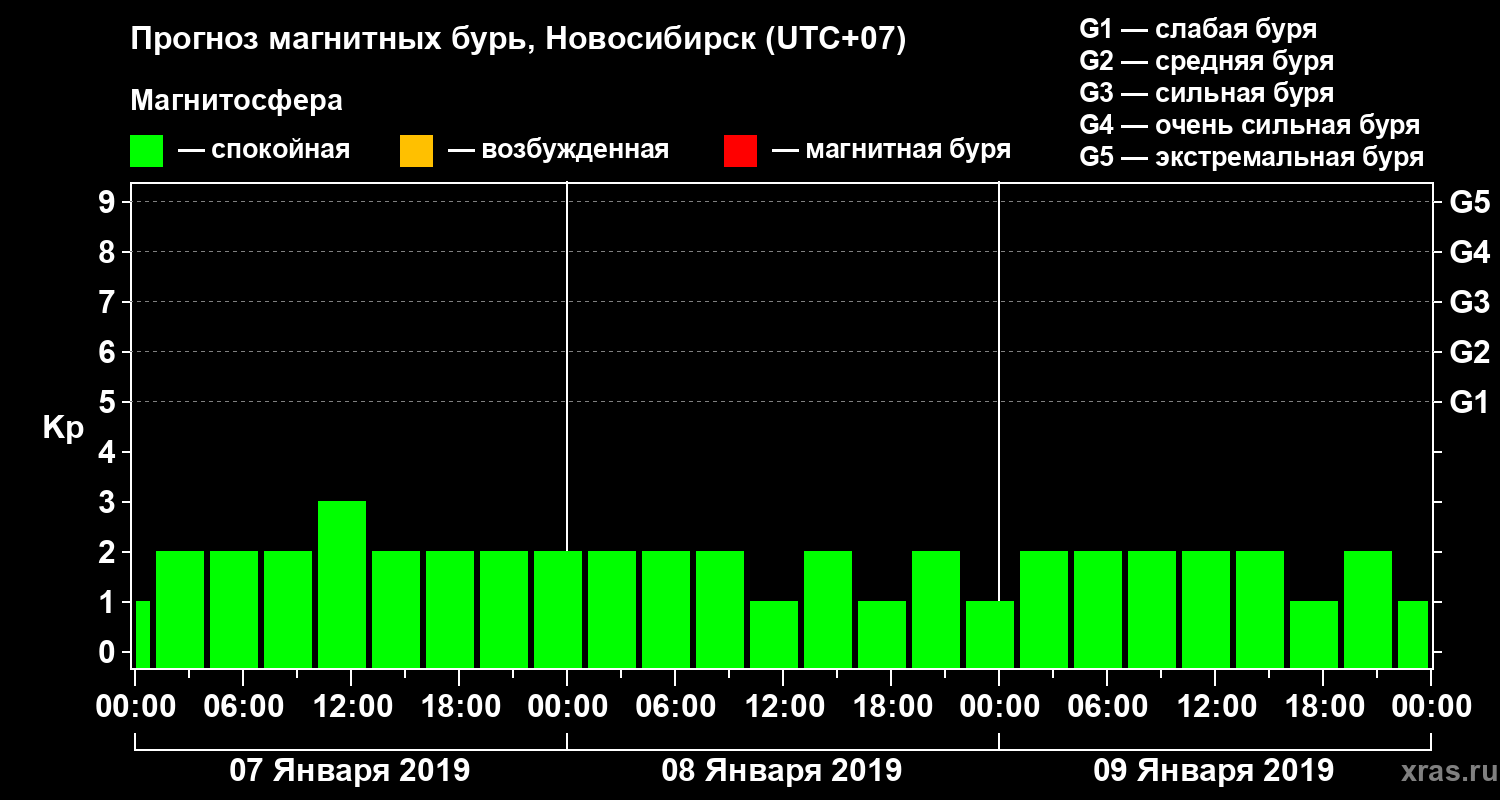 Прогноз магнитных бурь в Новосибирске — 7 января 2019 года