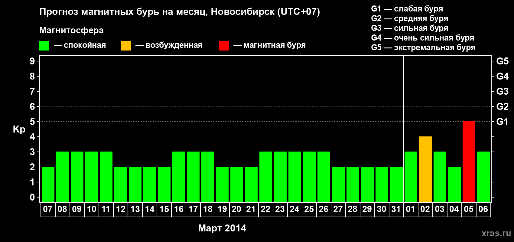 Прогноз магнитных бурь в Новосибирске — 7 марта 2014 года