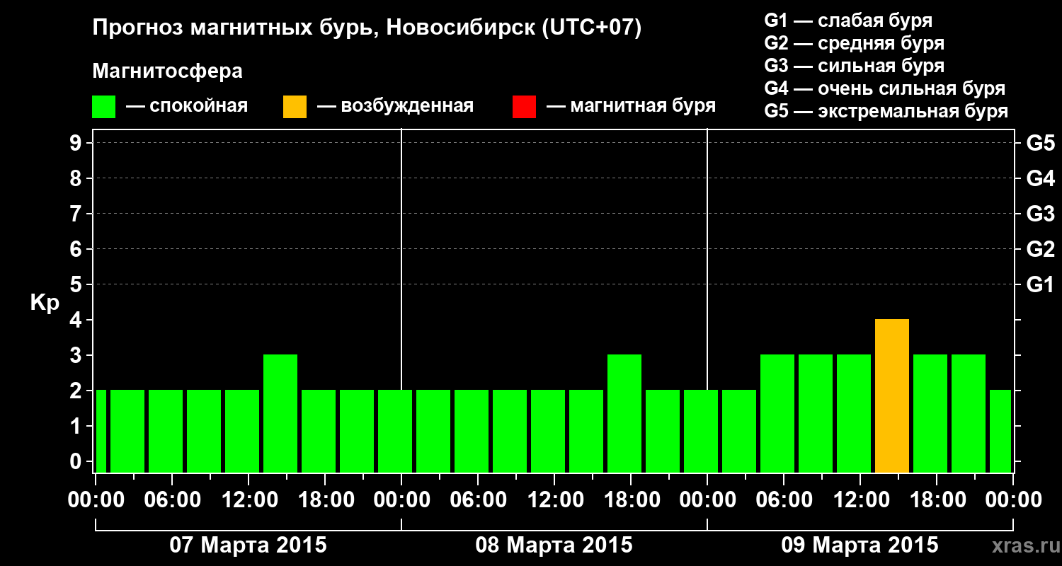 Прогноз магнитных бурь в Новосибирске — 7 марта 2015 года