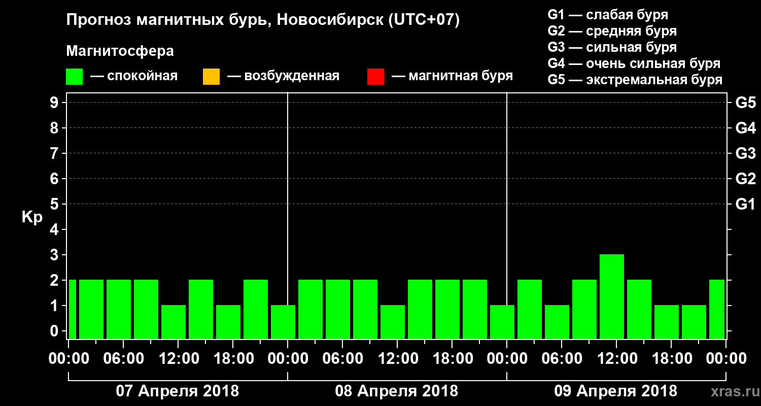 Прогноз магнитных бурь в Новосибирске — 7 апреля 2018 года