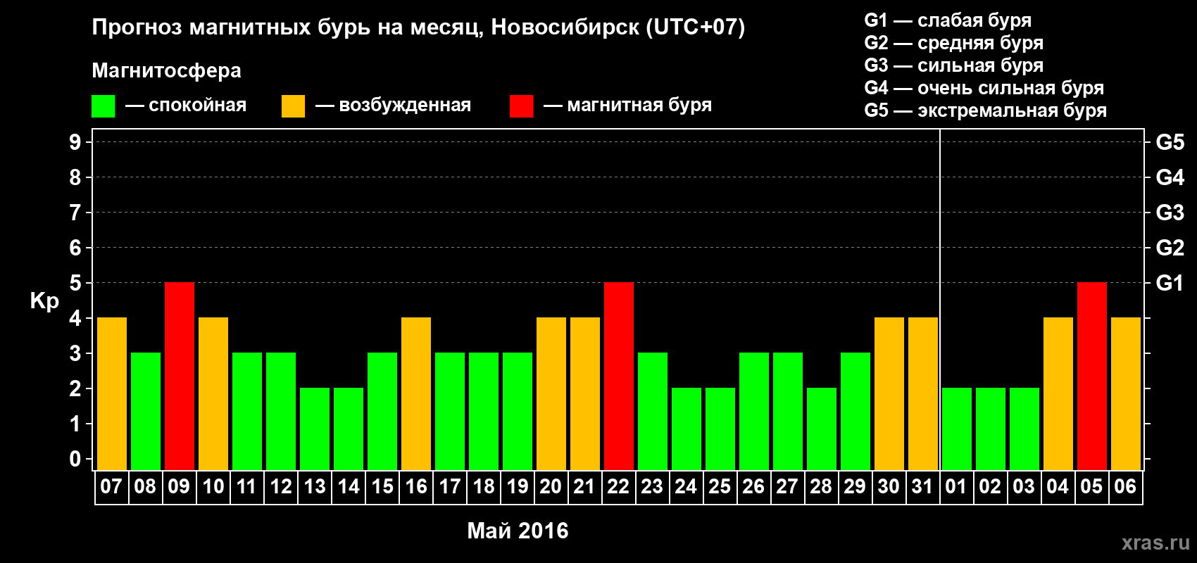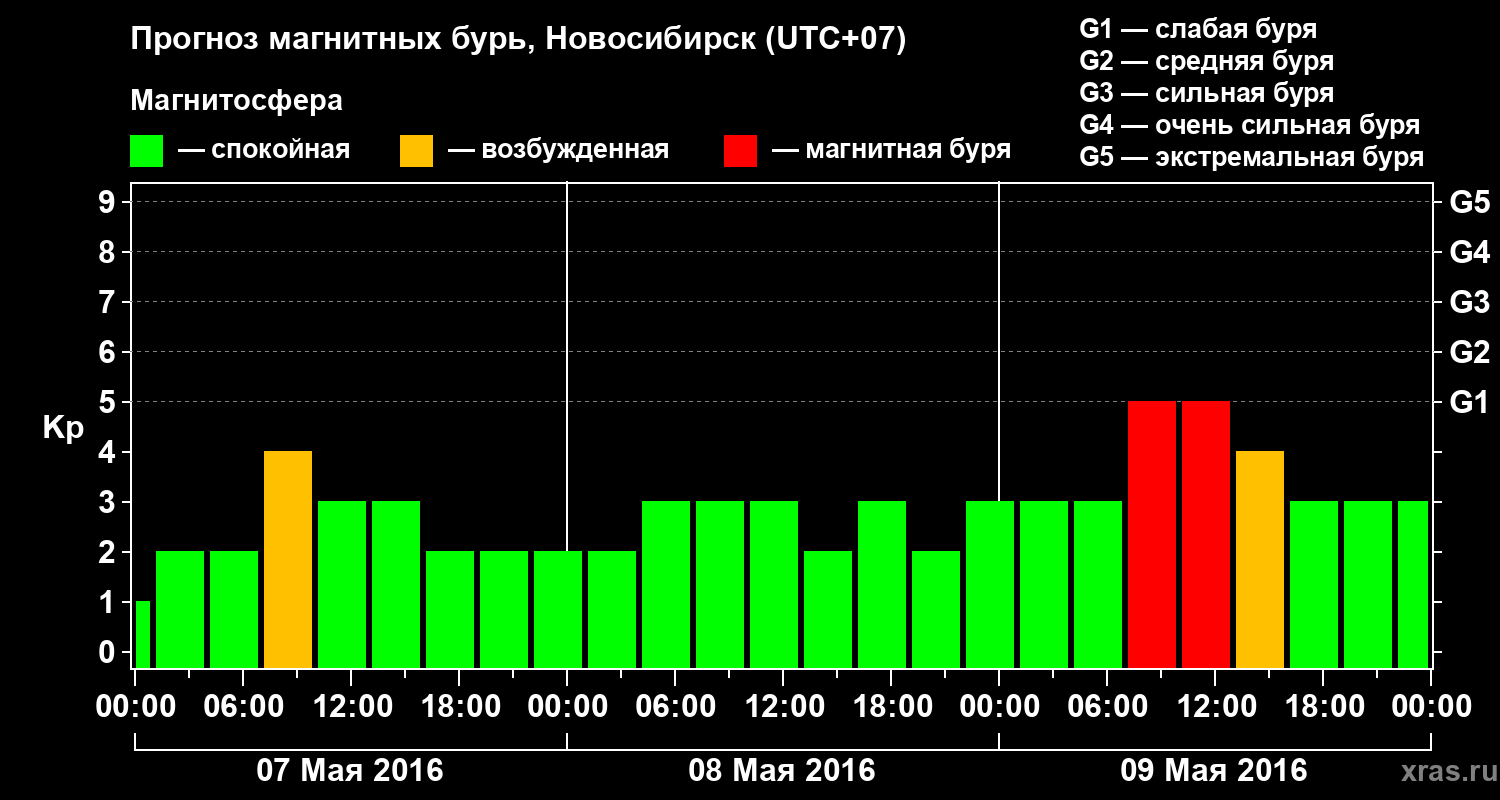 Прогноз магнитных бурь в Новосибирске — 7 мая 2016 года