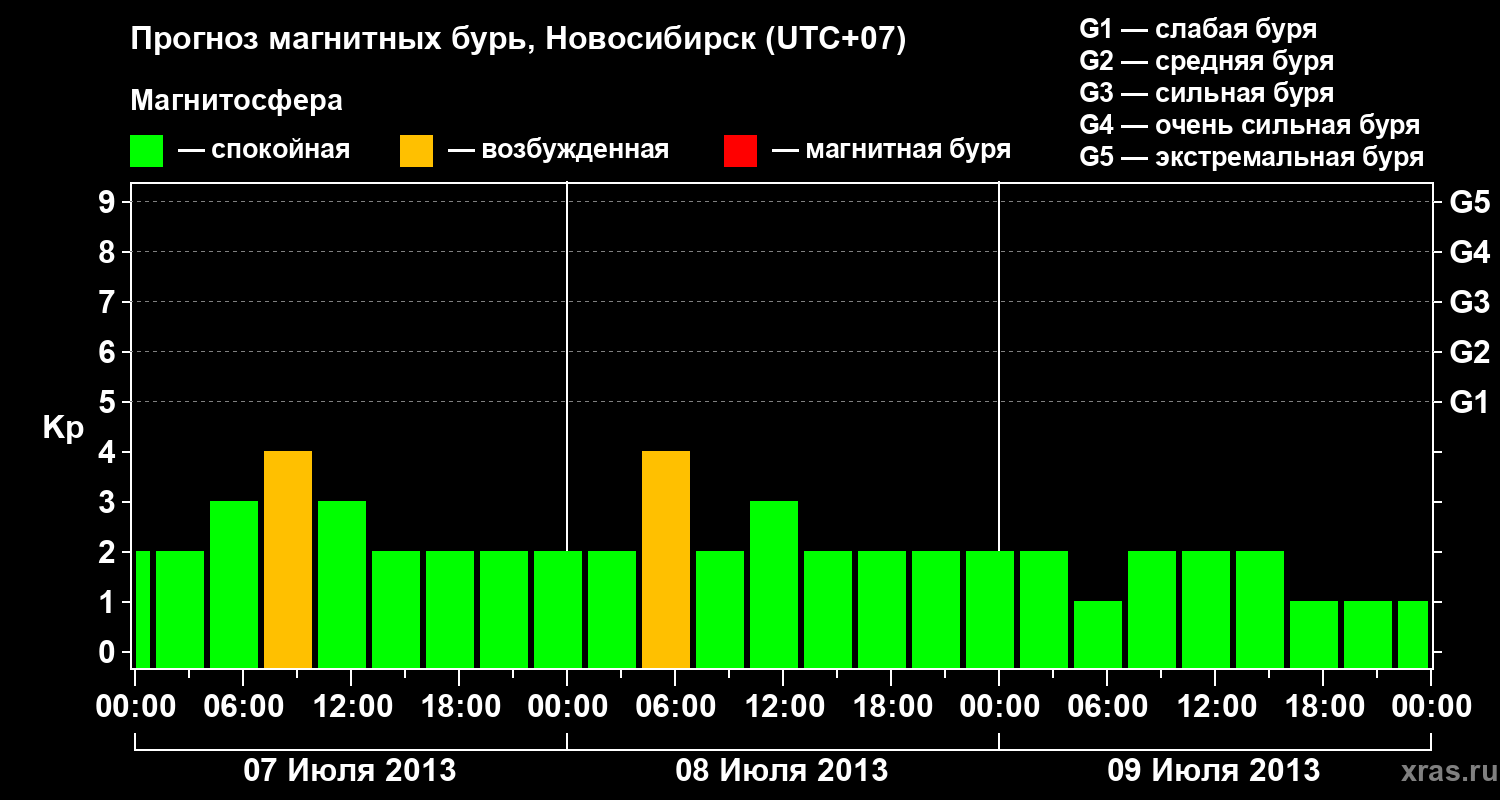 Прогноз магнитных бурь в Новосибирске — 7 июля 2013 года