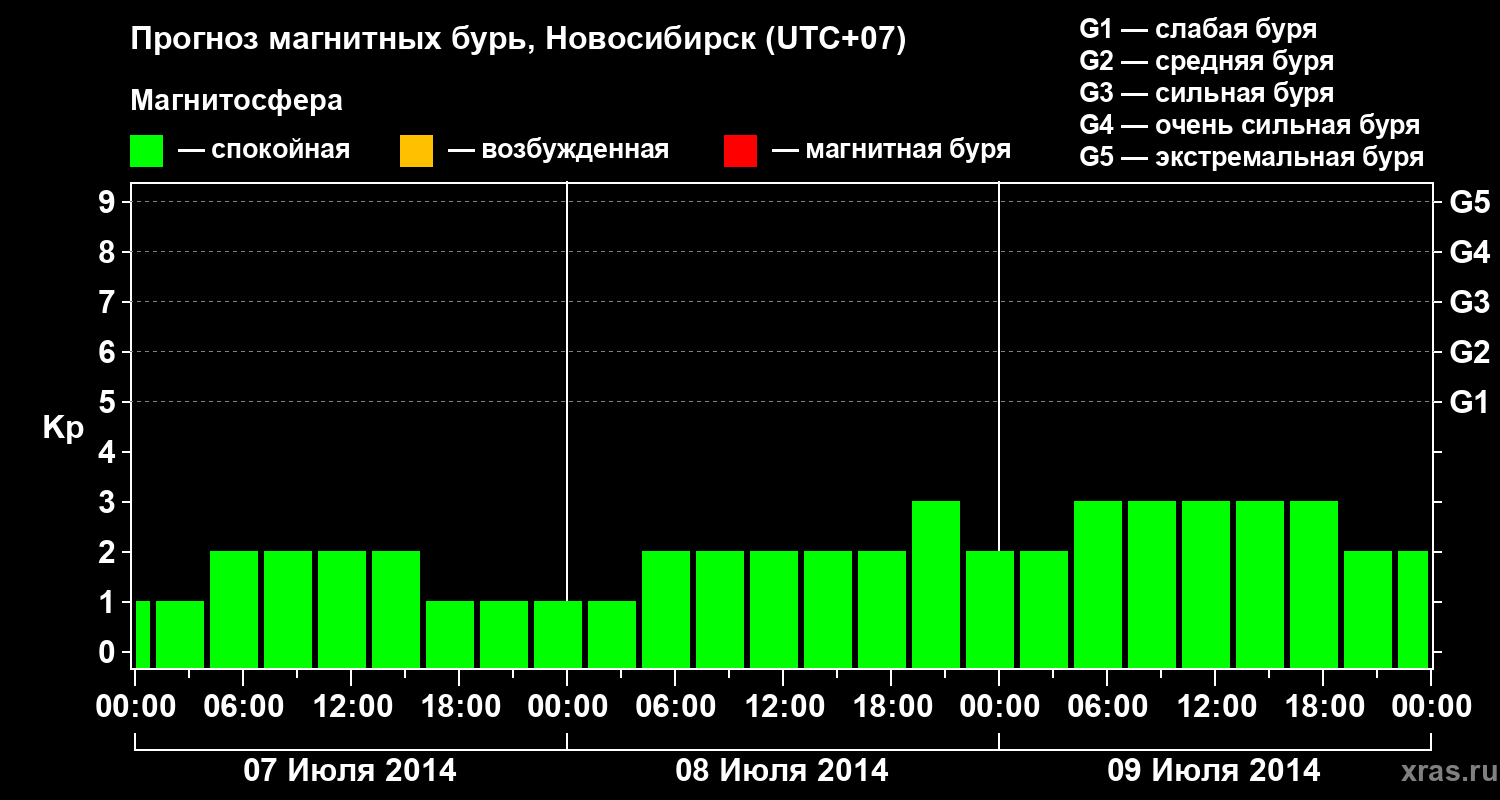 Прогноз магнитных бурь в Новосибирске — 7 июля 2014 года
