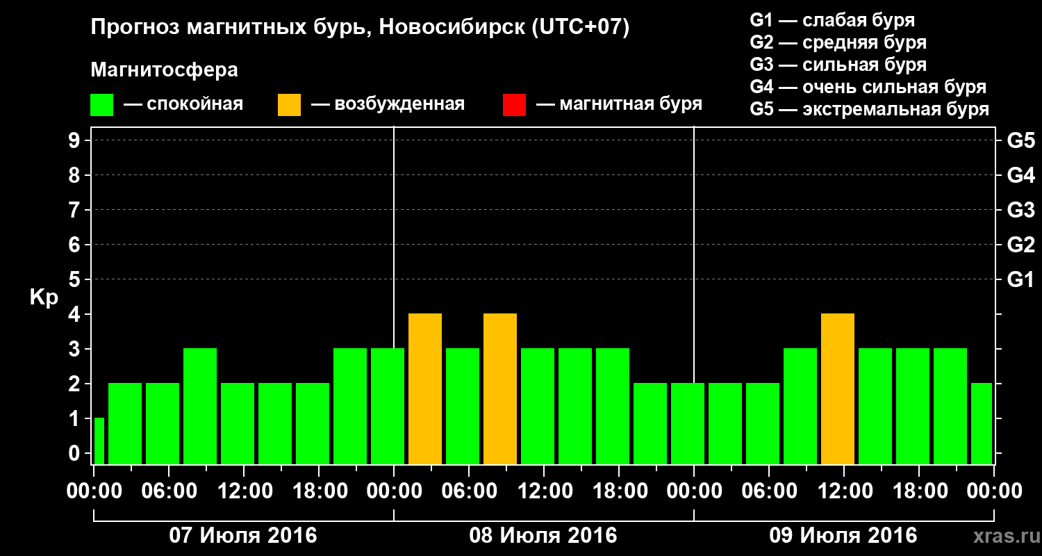 Прогноз магнитных бурь в Новосибирске — 7 июля 2016 года