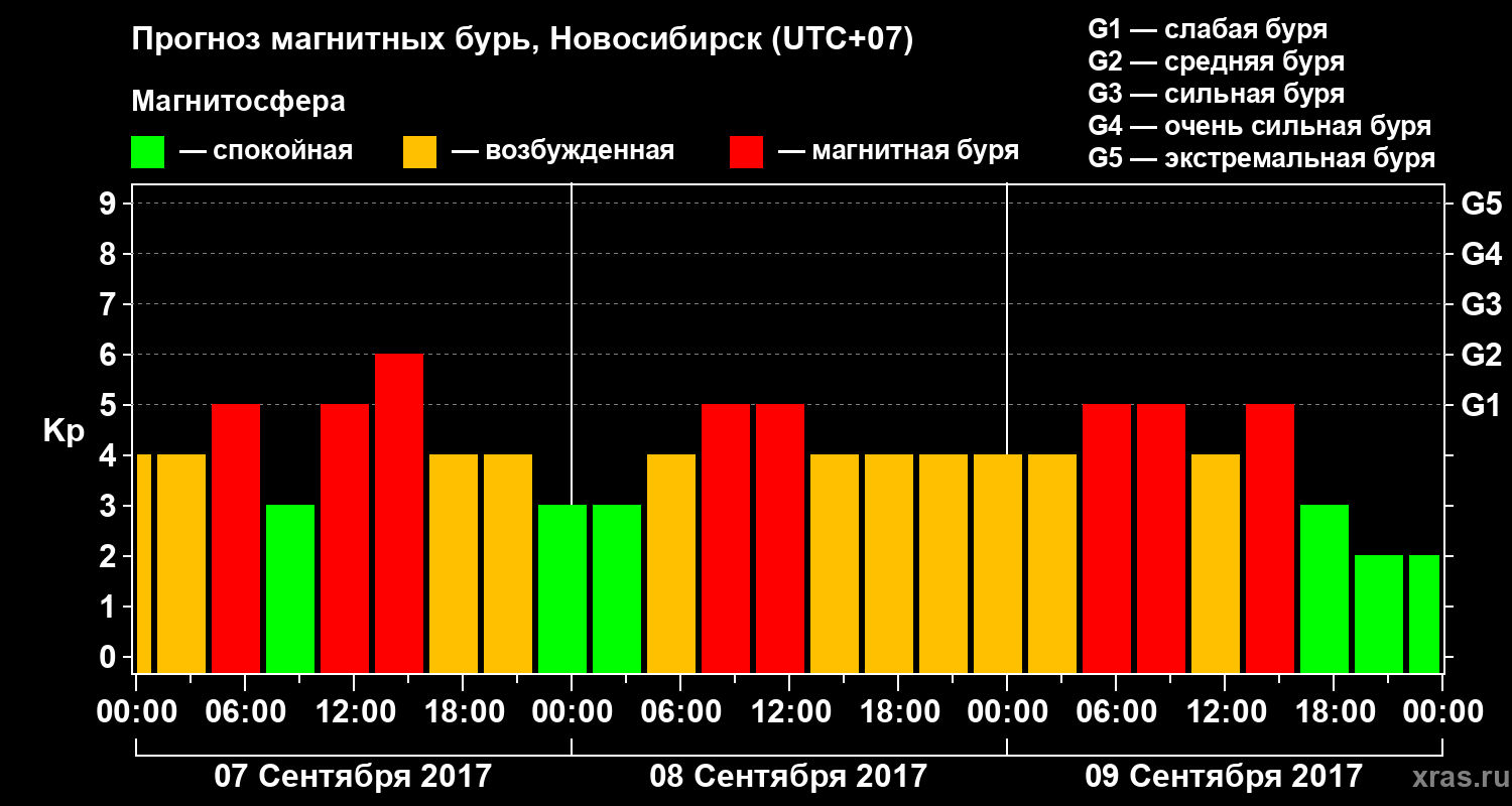 Прогноз магнитных бурь в Новосибирске — 7 сентября 2017 года