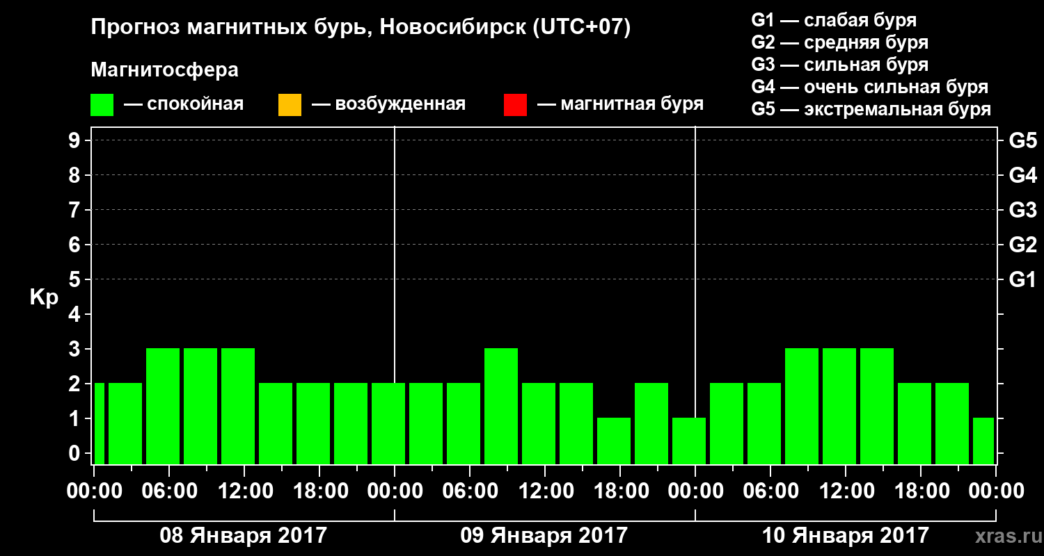 Прогноз магнитных бурь в Новосибирске — 8 января 2017 года
