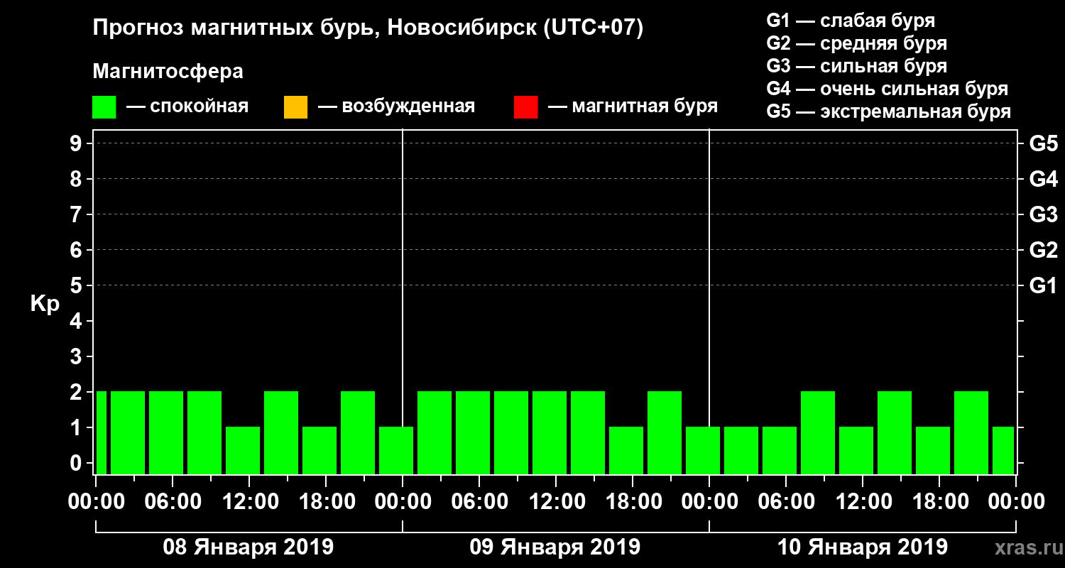 Прогноз магнитных бурь в Новосибирске — 8 января 2019 года
