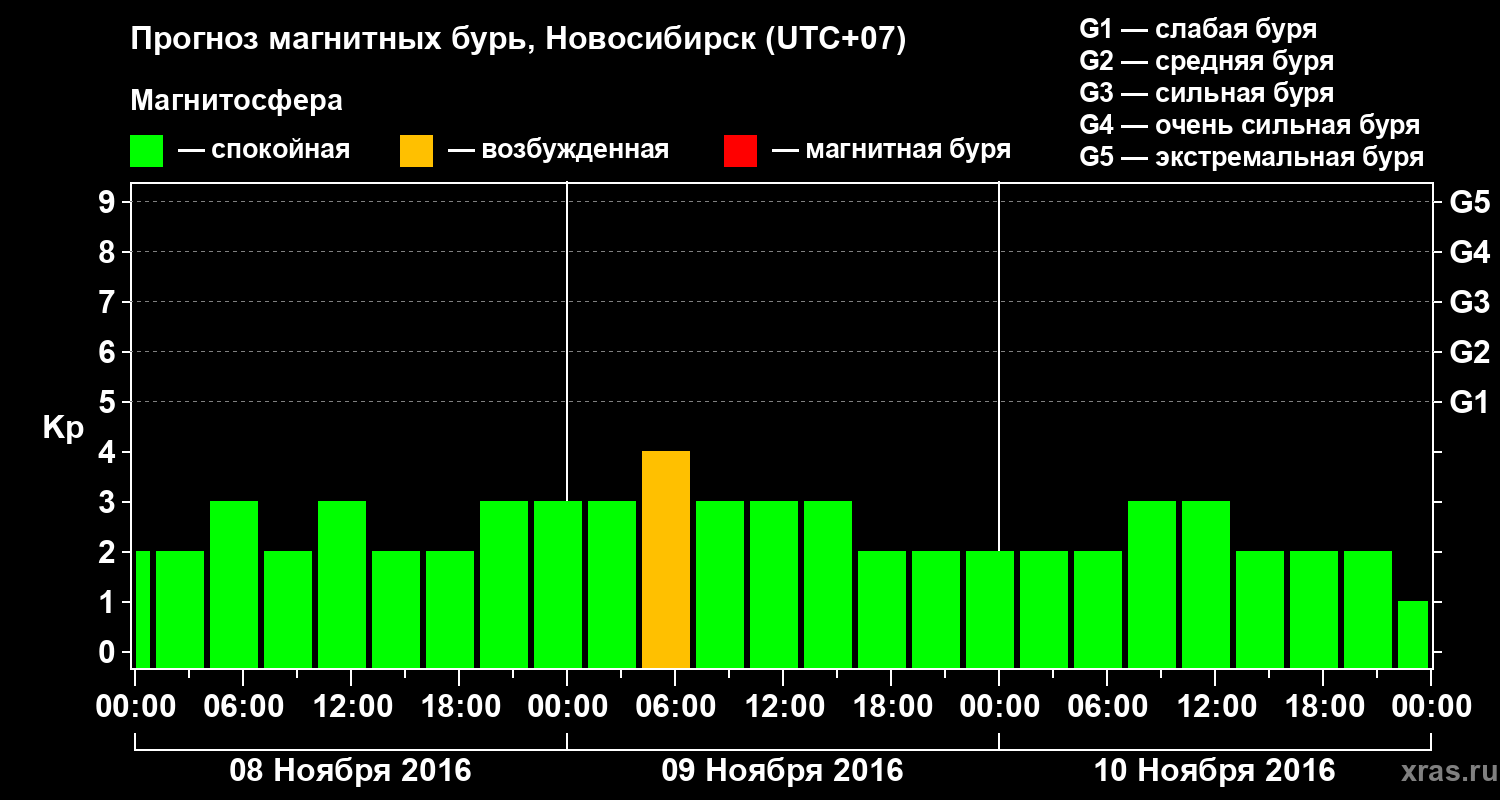 Прогноз магнитных бурь в Новосибирске — 8 ноября 2016 года