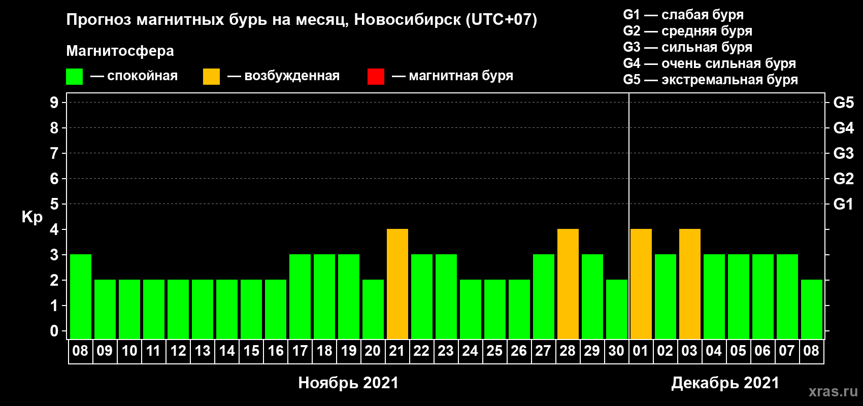 Прогноз магнитных бурь в Новосибирске — 8 ноября 2021 года