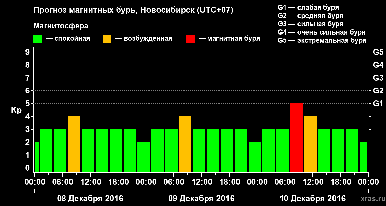 Прогноз магнитных бурь в Новосибирске — 8 декабря 2016 года