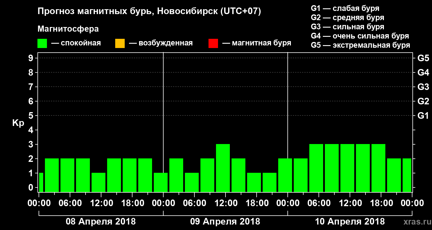 Прогноз магнитных бурь в Новосибирске — 8 апреля 2018 года