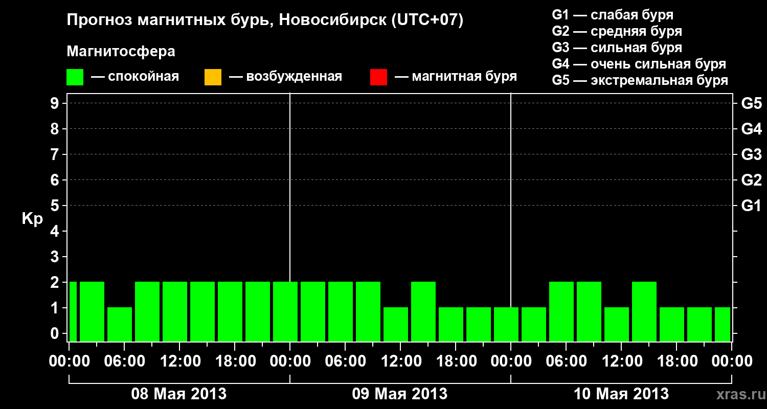 Прогноз магнитных бурь в Новосибирске — 8 мая 2013 года