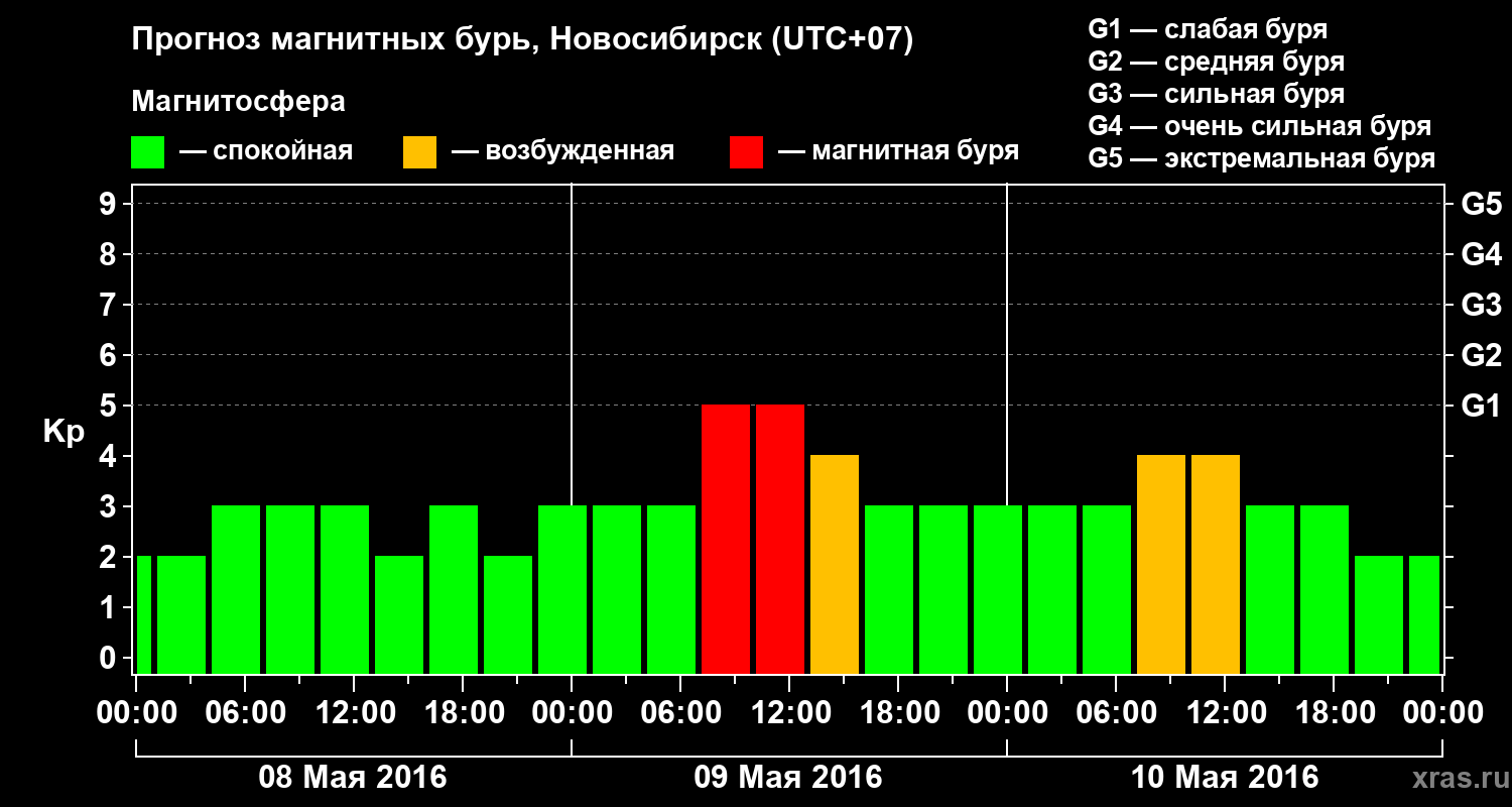 Прогноз магнитных бурь в Новосибирске — 8 мая 2016 года