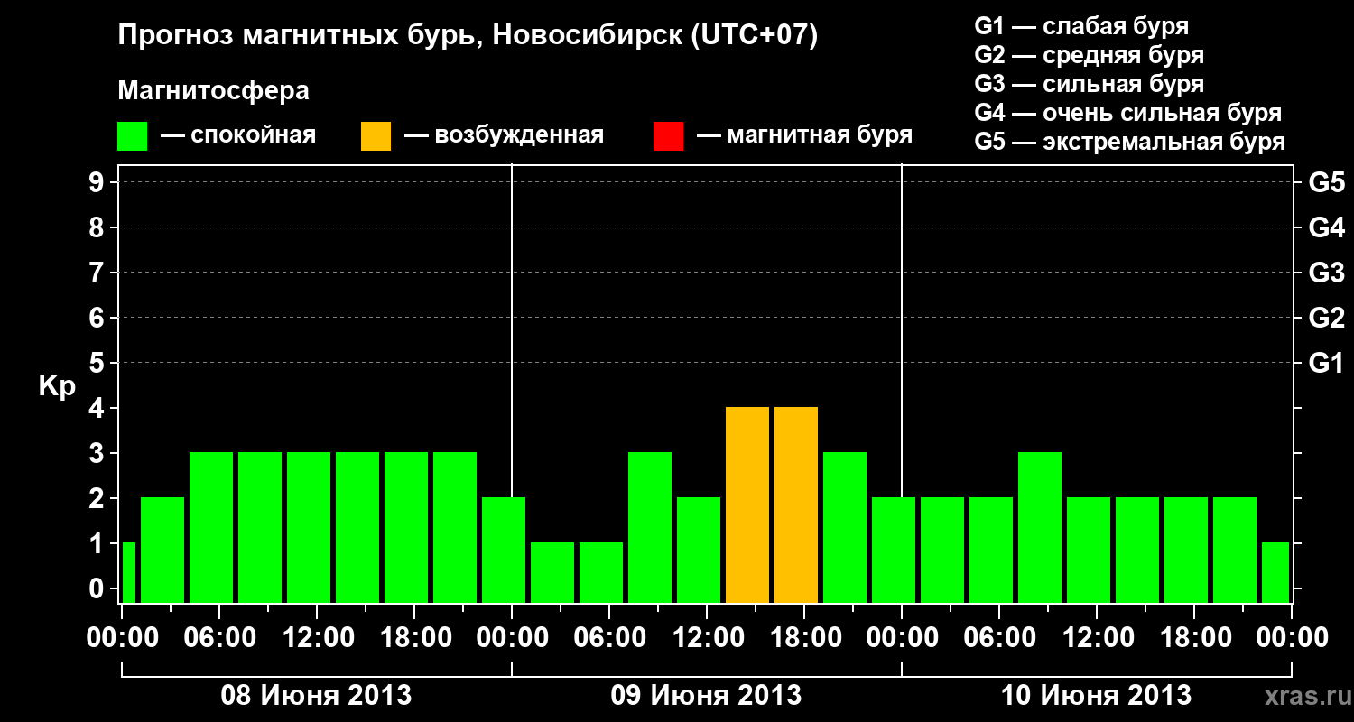 Прогноз магнитных бурь в Новосибирске — 8 июня 2013 года