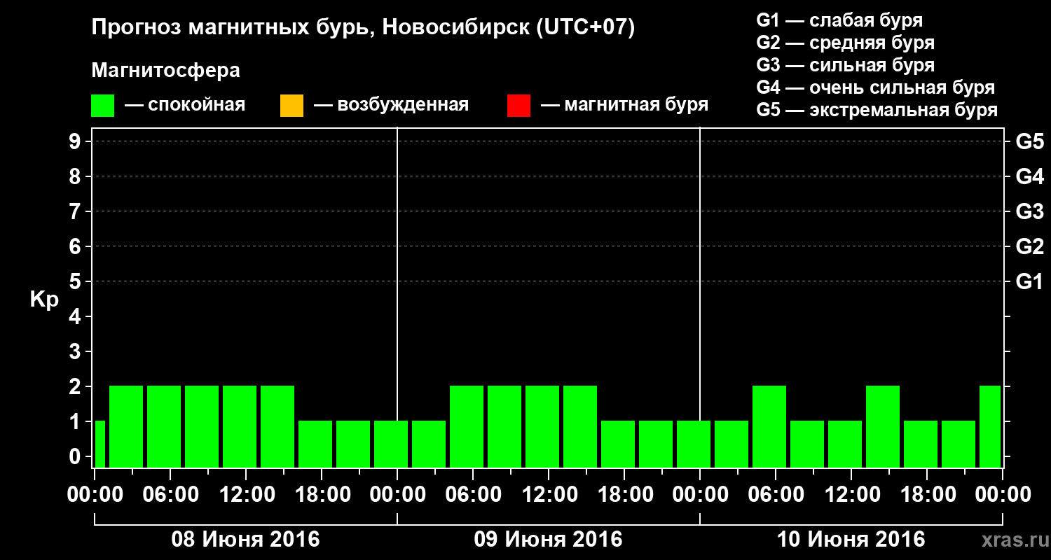 Прогноз магнитных бурь в Новосибирске — 8 июня 2016 года