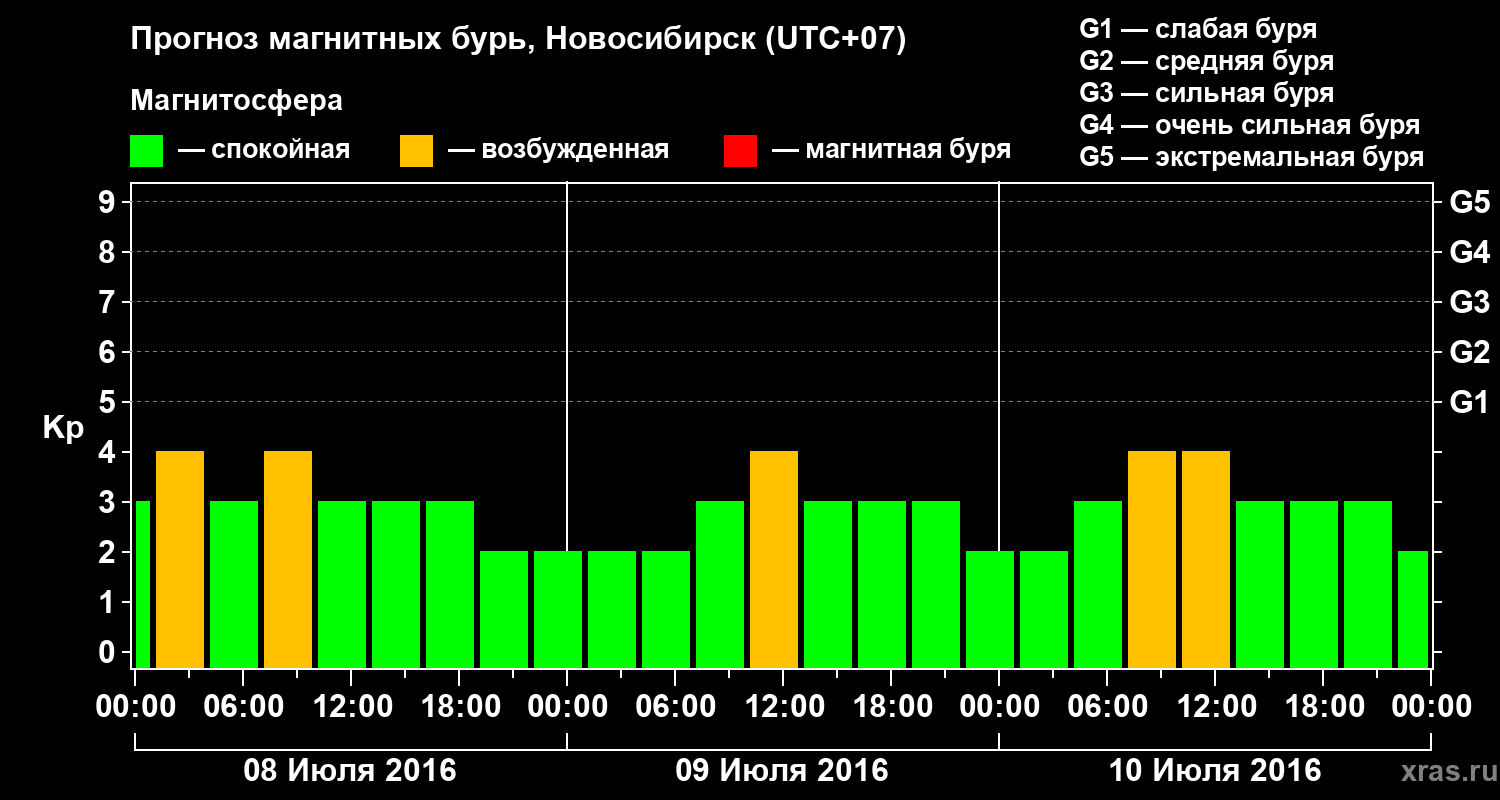 Прогноз магнитных бурь в Новосибирске — 8 июля 2016 года