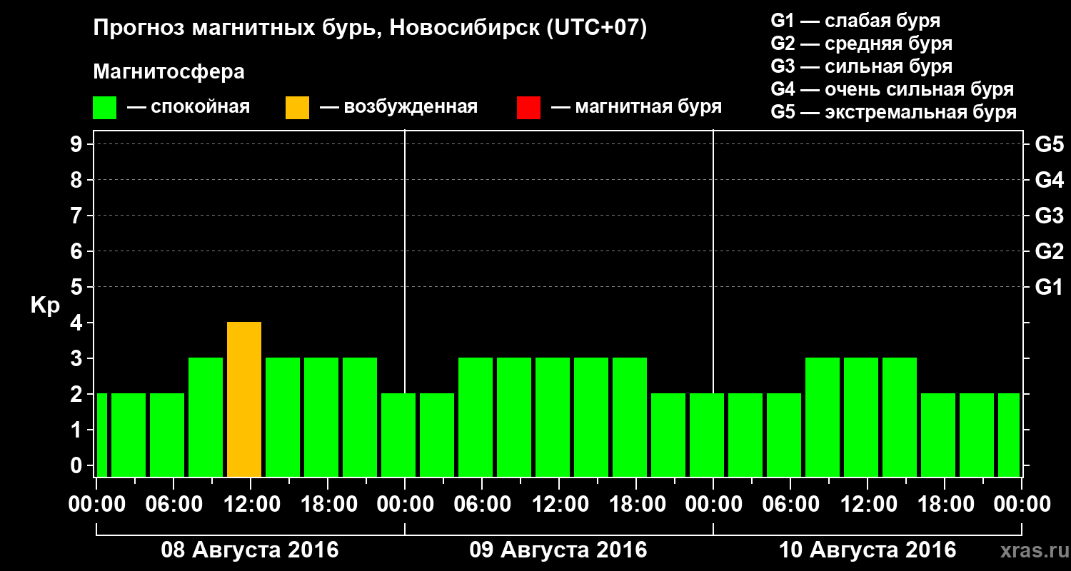 Прогноз магнитных бурь в Новосибирске — 8 августа 2016 года