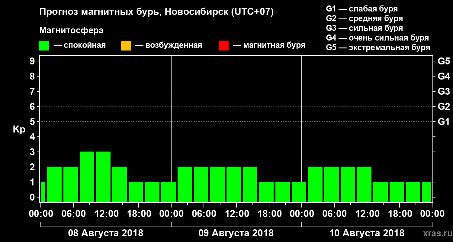 Прогноз магнитных бурь в Новосибирске — 8 августа 2018 года