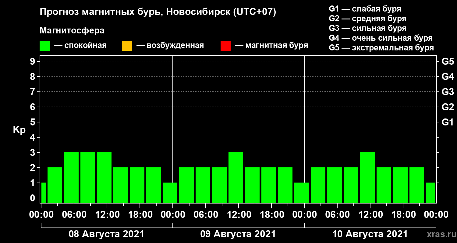 Прогноз магнитных бурь в Новосибирске — 8 августа 2021 года