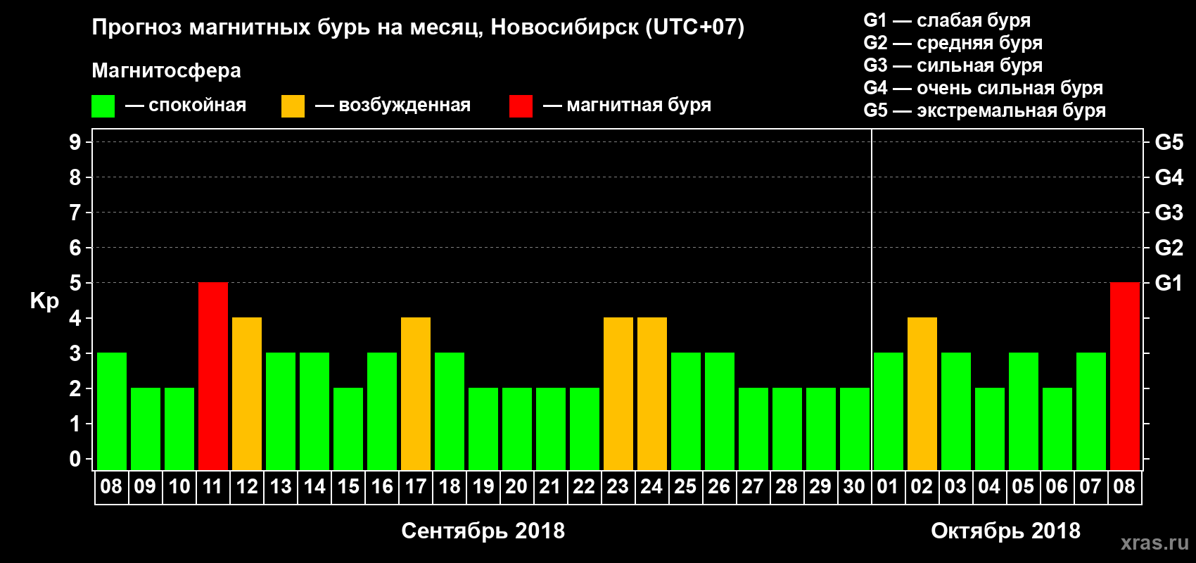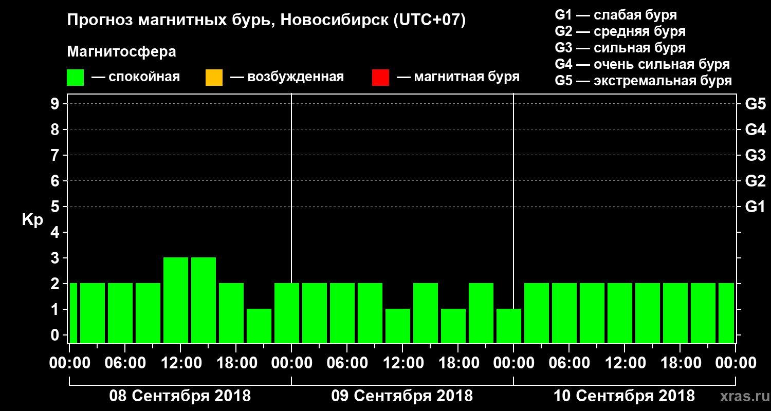 Прогноз магнитных бурь в Новосибирске — 8 сентября 2018 года