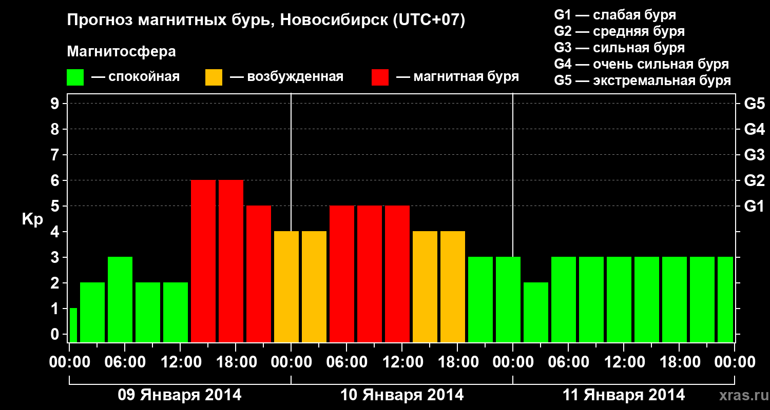 Прогноз магнитных бурь в Новосибирске — 9 января 2014 года
