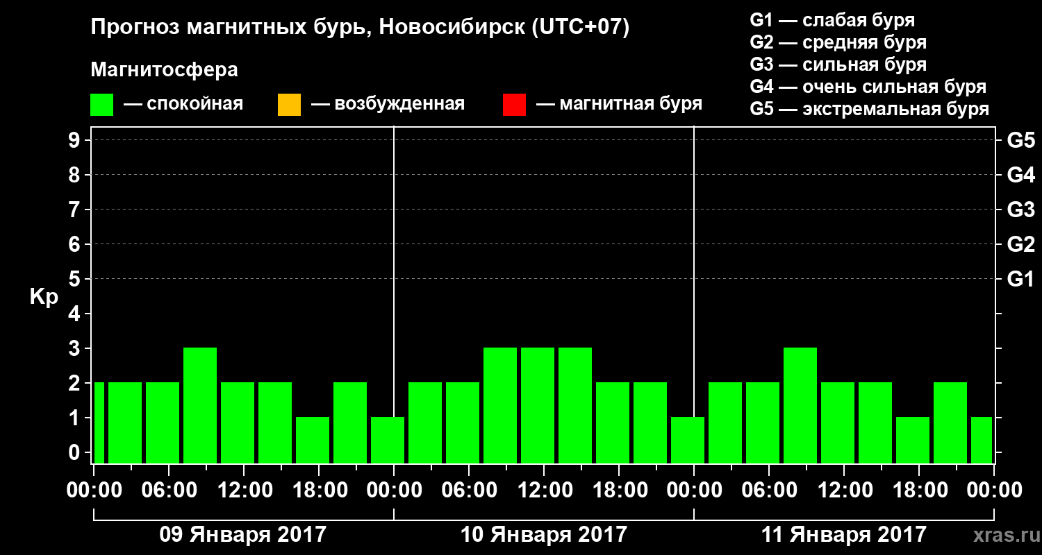 Прогноз магнитных бурь в Новосибирске — 9 января 2017 года