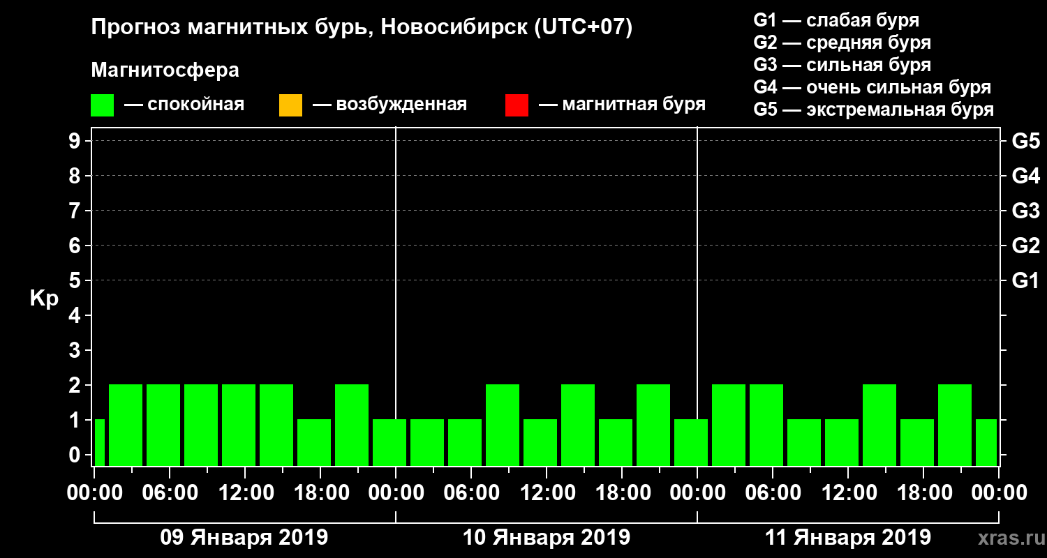 Прогноз магнитных бурь в Новосибирске — 9 января 2019 года