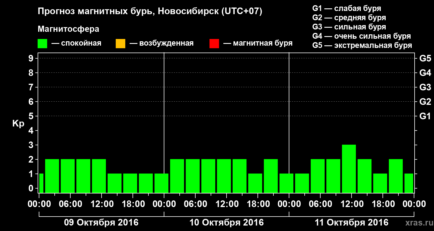 Прогноз магнитных бурь в Новосибирске — 9 октября 2016 года