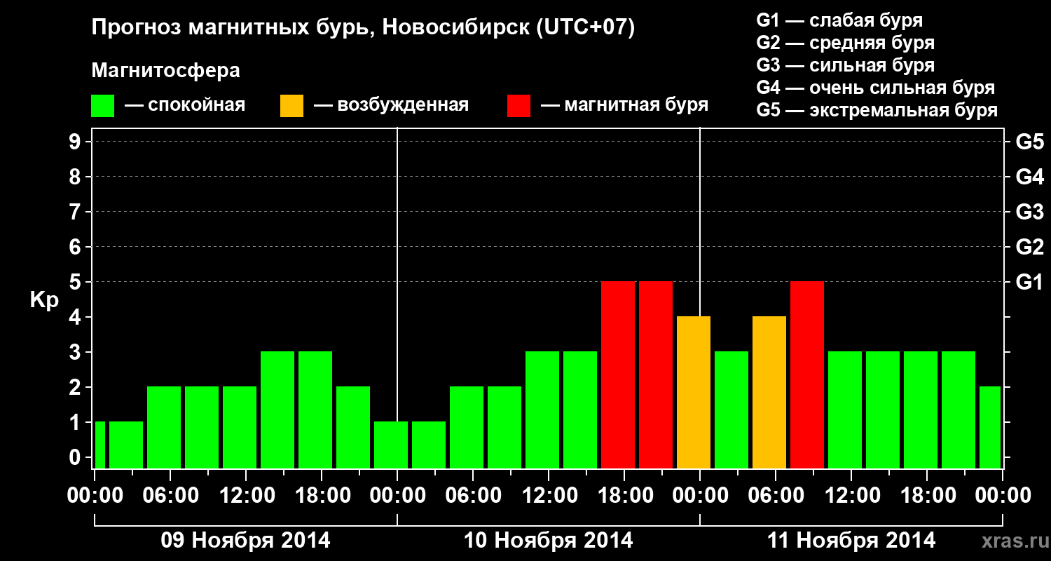 Прогноз магнитных бурь в Новосибирске — 9 ноября 2014 года