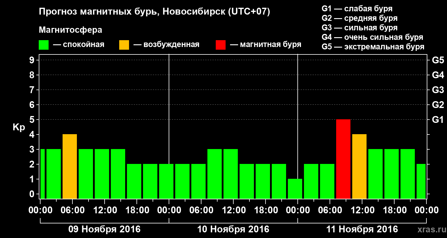 Прогноз магнитных бурь в Новосибирске — 9 ноября 2016 года