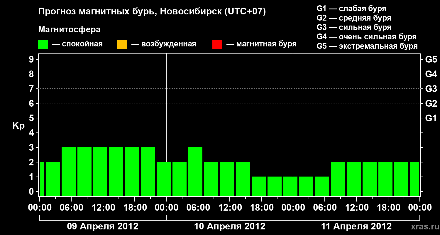Прогноз магнитных бурь в Новосибирске — 9 апреля 2012 года