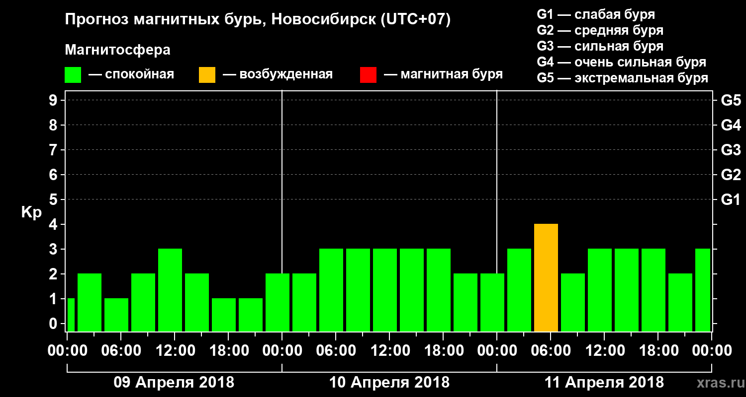 Прогноз магнитных бурь в Новосибирске — 9 апреля 2018 года