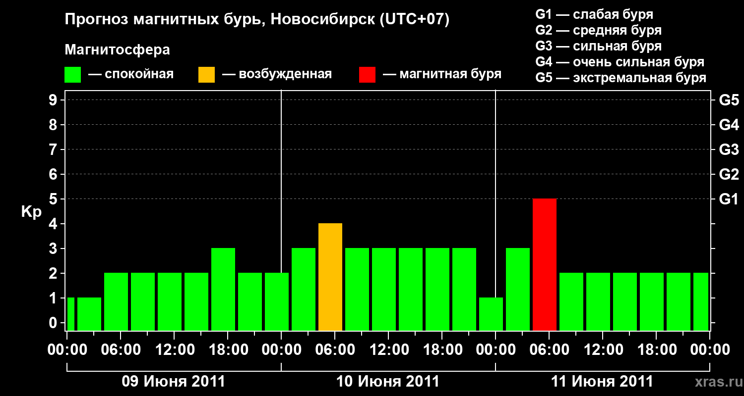 Прогноз магнитных бурь в Новосибирске — 9 июня 2011 года