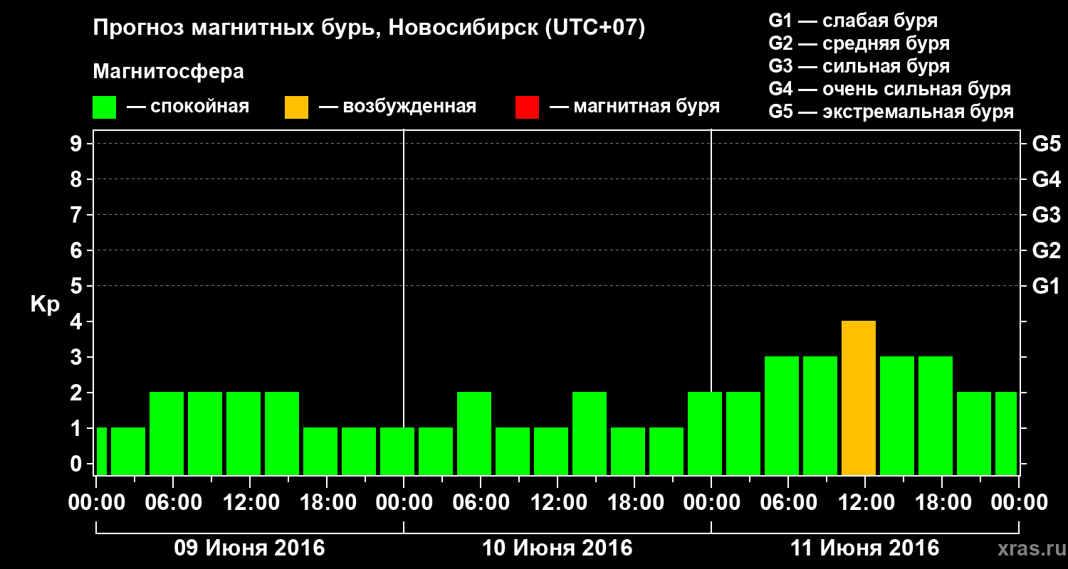 Прогноз магнитных бурь в Новосибирске — 9 июня 2016 года