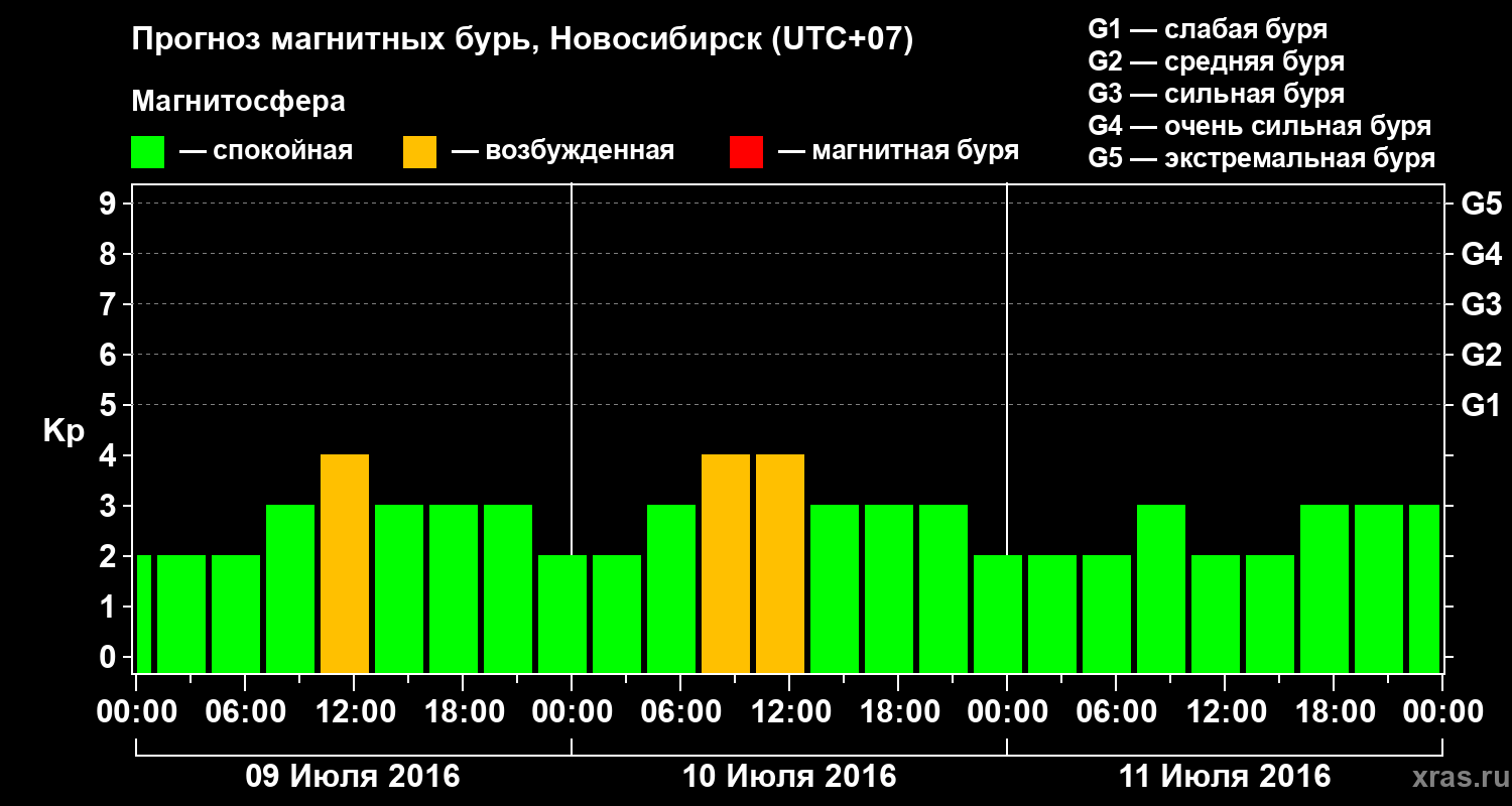 Прогноз магнитных бурь в Новосибирске — 9 июля 2016 года