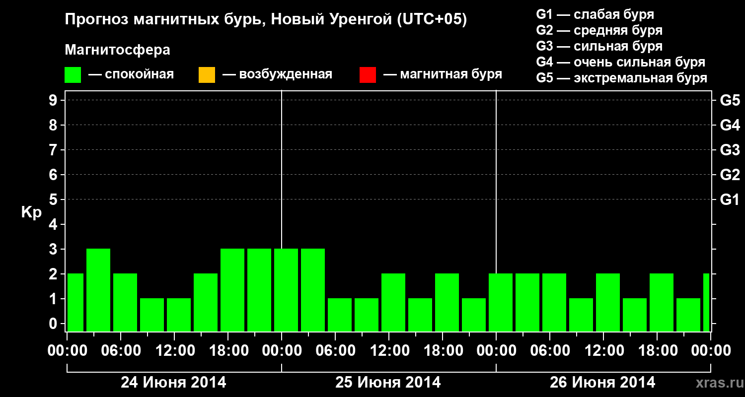 Прогноз магнитных бурь Новом Уренгое — 24 июня 2014 года