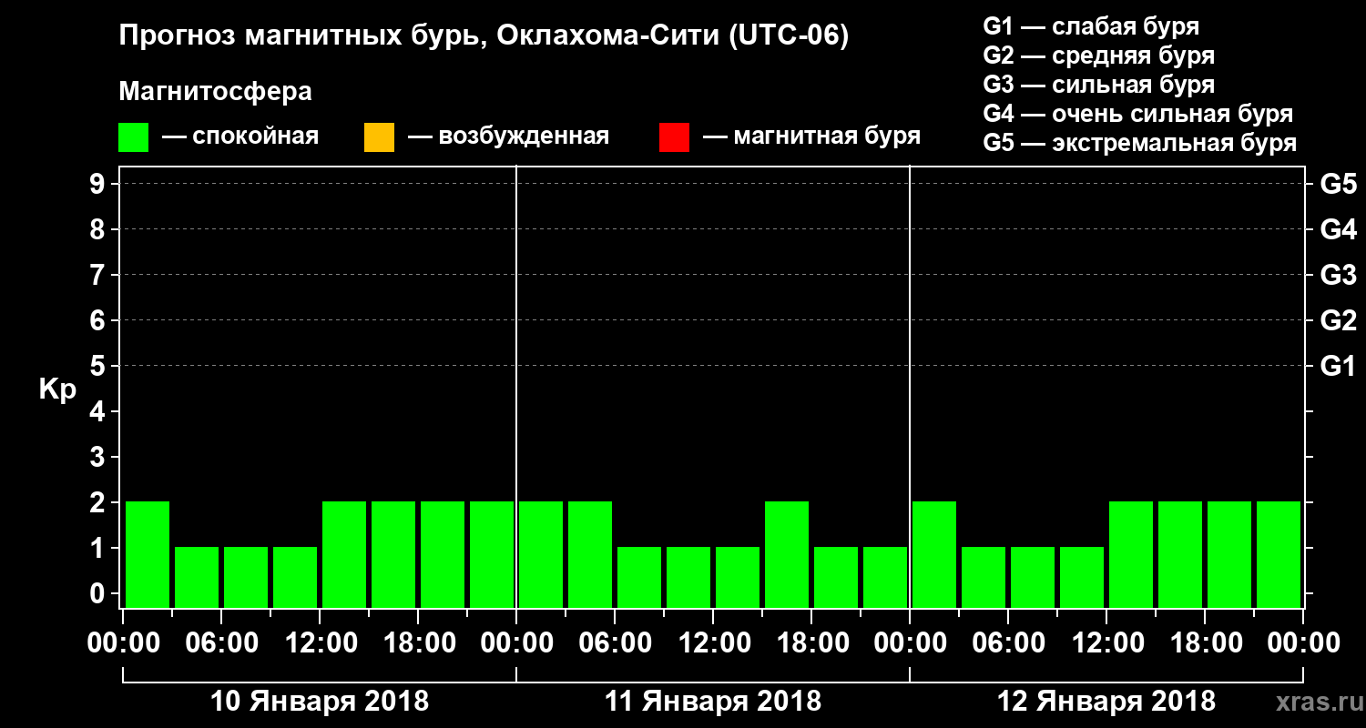 Прогноз магнитных бурь Оклахома-Сити на 10 января 2018 года