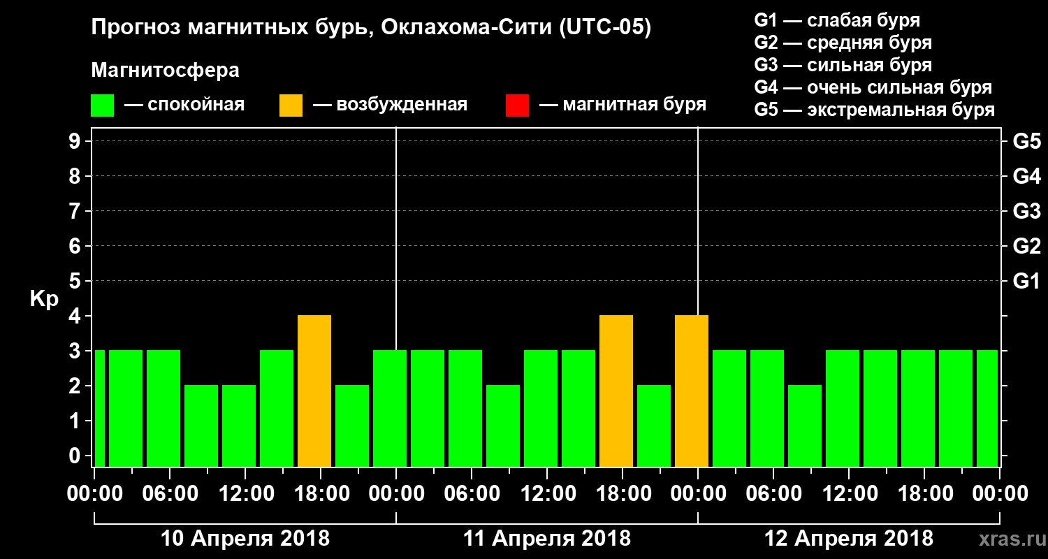 Прогноз магнитных бурь Оклахома-Сити на 10 апреля 2018 года