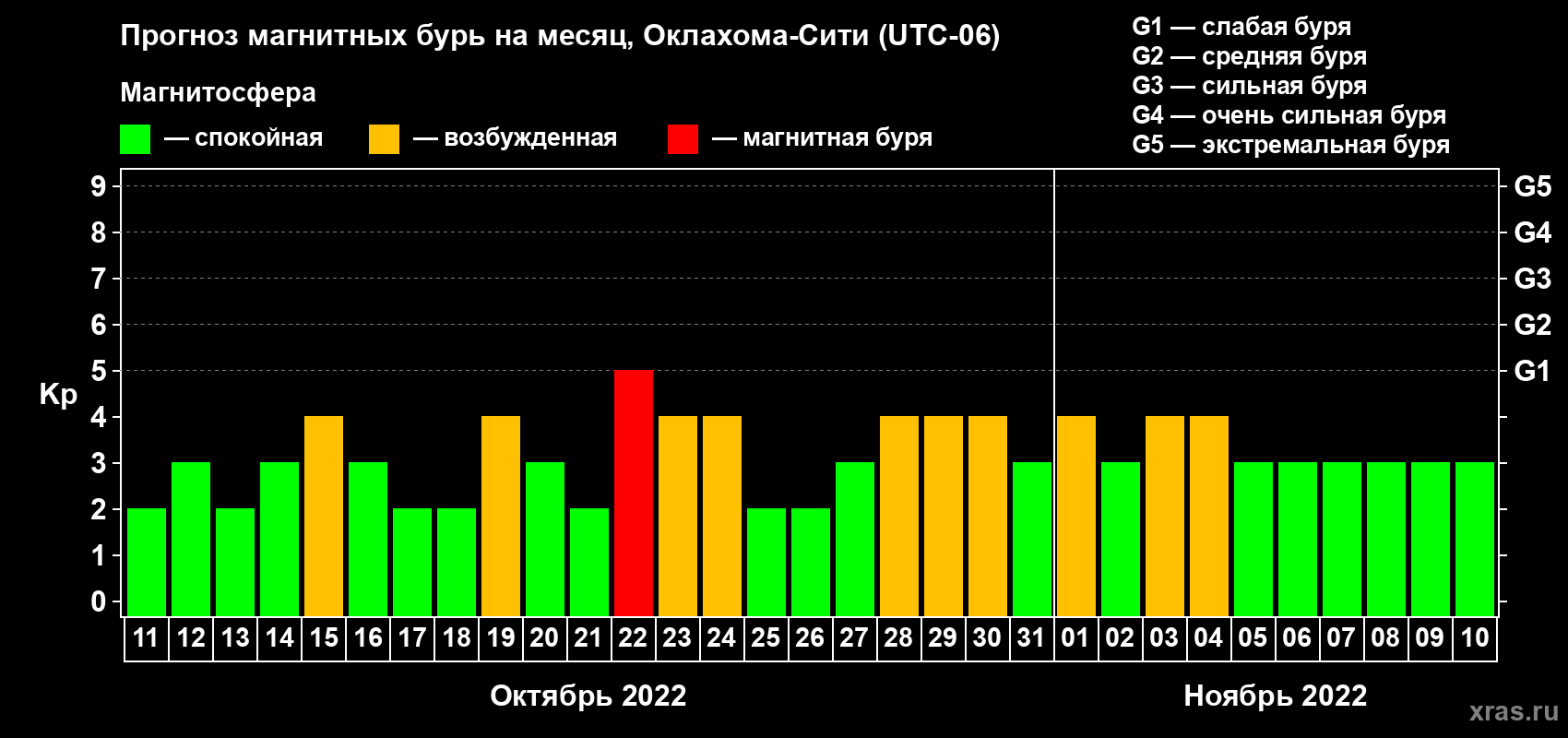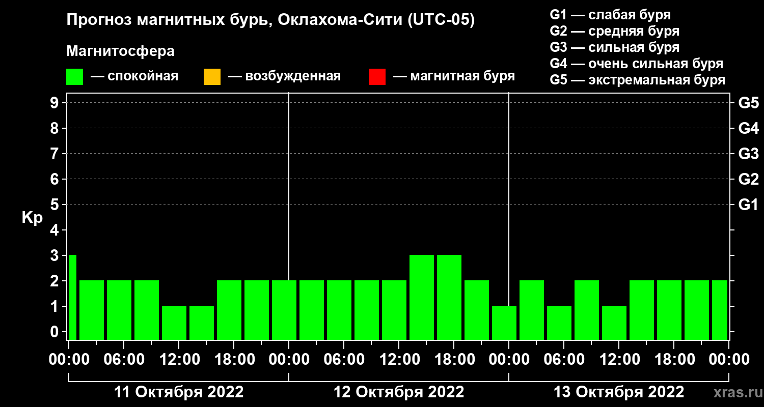 Прогноз магнитных бурь Оклахома-Сити на 11 октября 2022 года