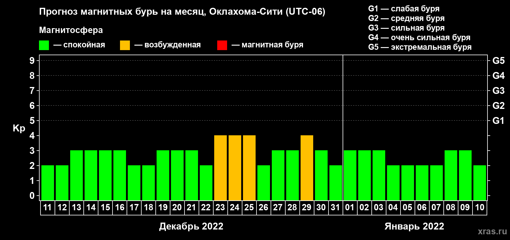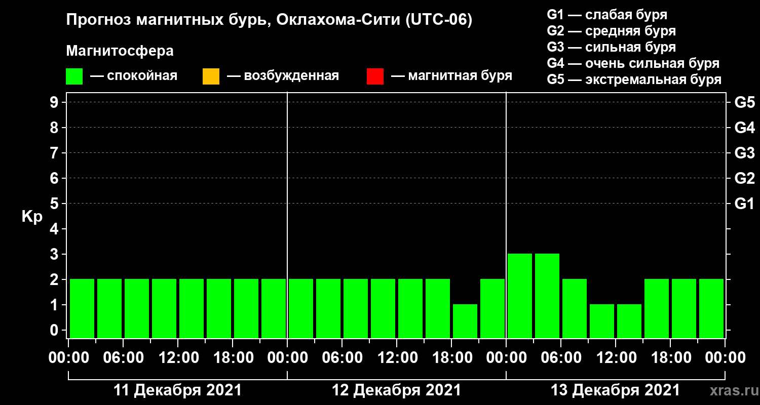 Прогноз магнитных бурь Оклахома-Сити на 11 декабря 2021 года