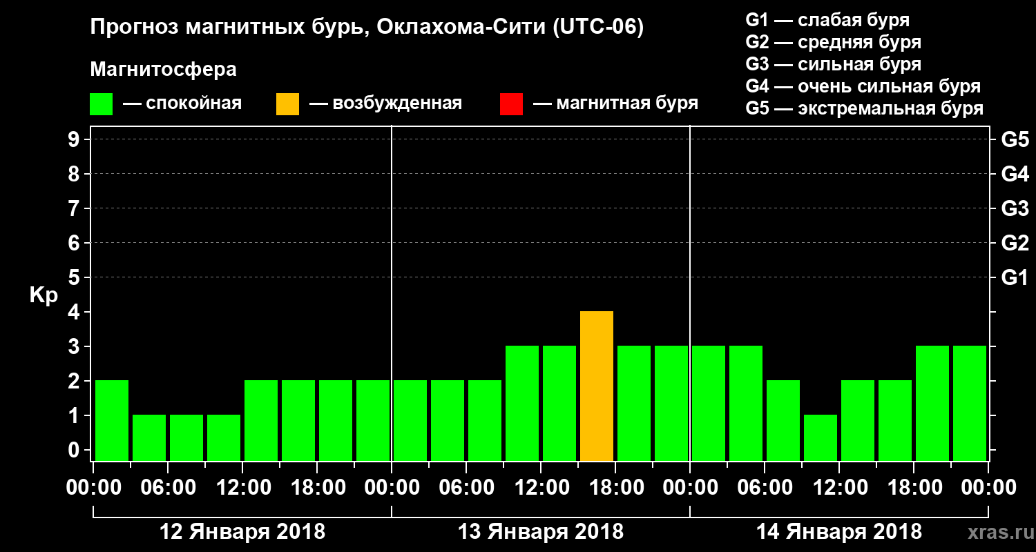 Прогноз магнитных бурь Оклахома-Сити — 12 января 2018 года