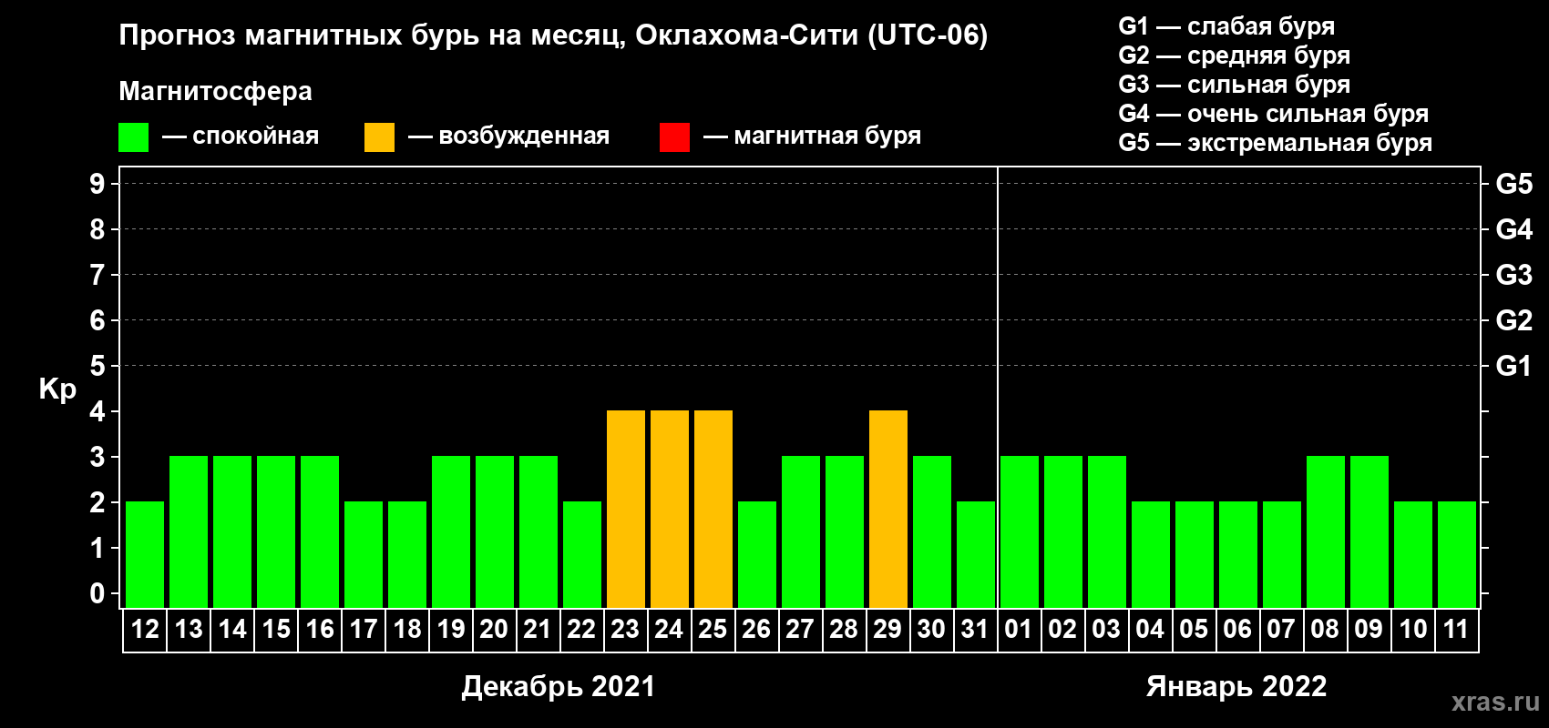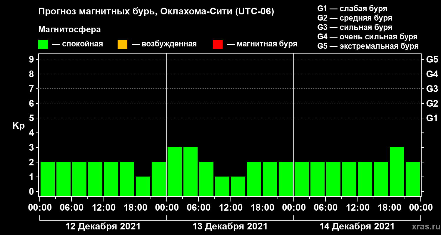 Прогноз магнитных бурь Оклахома-Сити на 12 декабря 2021 года